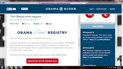 Anyway, why even stop at happy events? If a loved one dies, don't forget to add to the obituary: "In lieu of flowers, please send a donation to Obama for America."